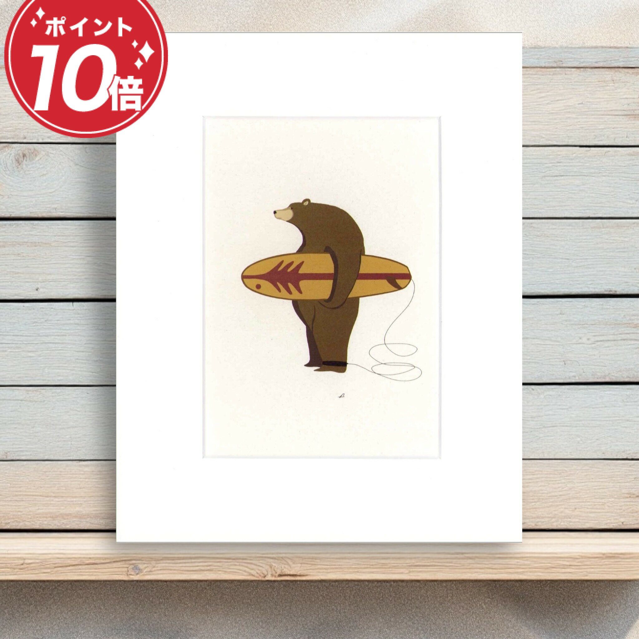 ご紹介するのは、【レビュー特典あり】サーフィン 絵画 マットプリント Surfing Bear Ventana Surfboards 25.4cm×20.3cm 35.5cm×27.8cm インテリア アートパネル モダン 玄関 アート 絵 おしゃれ 寝室 壁掛け かわいい 可愛い ハワイ 海 ビーチ 砂浜 南国 マットプリント Fabian Lavaterです。