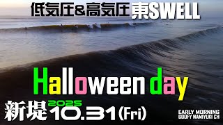 片貝新堤サーフィン波情報【ハロウィーンSWELL】2025年10月31日 サーフィンのビデオカメラ X Facebook はてブ Pocket LINE コピー 2025.10.31 片貝新堤防サーフィン、2025年10月31日(金曜)ハロウィーンDayの片貝新堤の波情報うねりの様子やサーファー達を撮影。低気圧 …