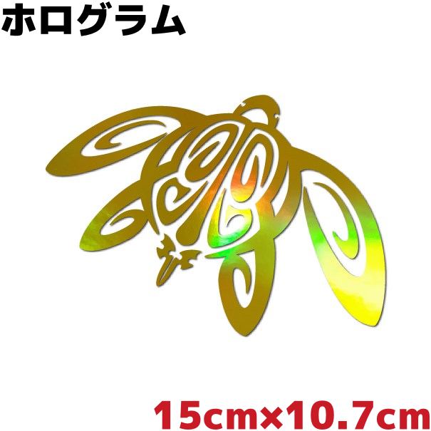 ご紹介するのは、ハワイアン防水ステッカーシール トライバル ホヌ 15cm×10.7cm ゴールドホログラム サーフィン サーフボード カヤック 水上バイク ボート アウトドア カッコいいです。
