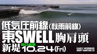 片貝新堤サーフィン波情報【東SWELL胸肩頭/低気圧】2025年10月24日 サーフィンのビデオカメラ X Facebook はてブ Pocket LINE コピー 2025.12.08 片貝新堤防サーフィン、2025年10月24日(金曜)片貝新堤の波情報うねりの様子やサーファー達を撮影。低気圧前線による東ウネリ …