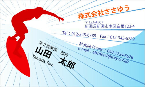 ご紹介するのは、【デザイン名刺印刷】趣味・職業名刺[H_910_k]《カラー名刺片面100枚入ケース付》テンプレートを選んで簡単名刺作成お店、自営業、フリーのご職業からスポーツ、ホビーまで豊富なデザインを取り揃えています【サーフィン・インストラクター】です。