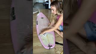 how to put traction pad on a surfboard how to put a tail pad on my surfboard #surfergirl #surfvlogger #girlwiththepinkboard.