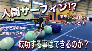 体操選手がバランスボールでちょっと危険な遊び!人間サーフィン⁉︎