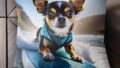 サーフボードのファンボード | サーフボード チワワ 海 太陽 波 犬のライフジャケット クッションカバー 45×45cm アニマル柄 おしゃれ 可愛い クッション本体付き 正方形 犬ファン