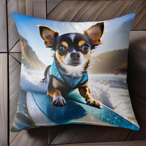 ご紹介するのは、サーフボード チワワ 海 太陽 波 犬のライフジャケット クッションカバー 45×45cm アニマル柄 おしゃれ 可愛い クッション本体付き 正方形 犬ファンです。