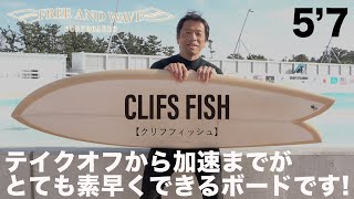 テイクオフから加速までがとても素早くできるボードです! フリーアンドウェーブ サーフボード CLIFFS FISH クリフフィッシュ 5’7’’ フィッシュ ツイン フィン付き