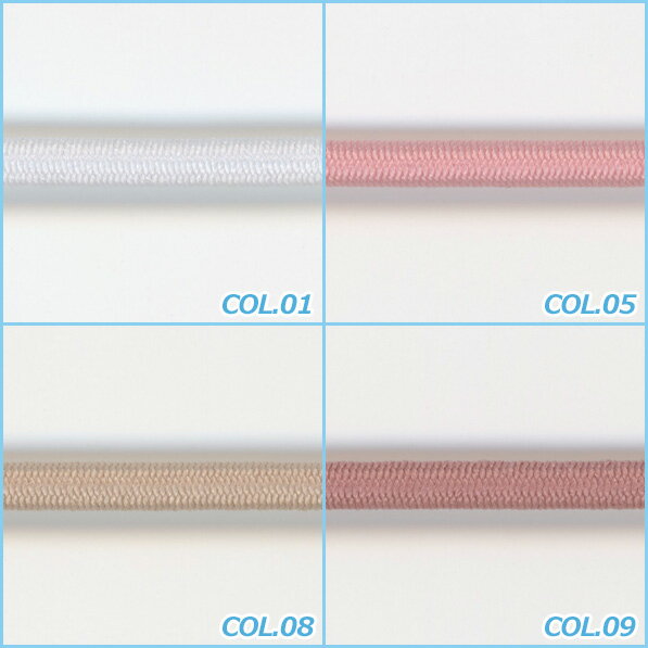 物性が良く、耐久性の優れた伸縮性の丸紐で、締付けが通常よりも抑えめで、あたりが優しくなるようにソフト加工が施されています。