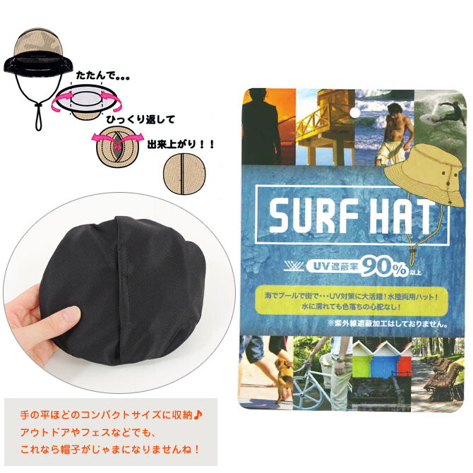 取り外せるあご紐に、折りたたんで手の平サイズに収納できるハット! 旅行やレジャー時の持ち運びに困ることもありませんね。
