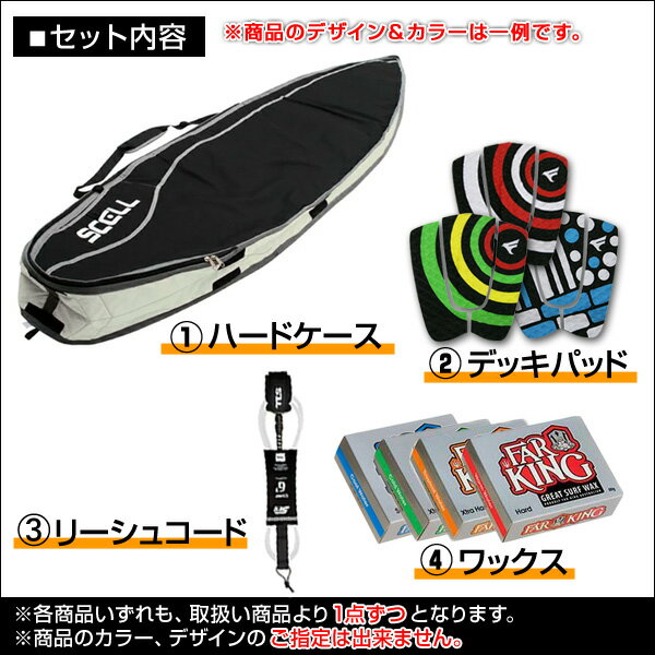 【商品内容】 1.ハードケース 2.デッキパッド 3.リーシュコード 4.ワックス 【注意事項】 ・各商品いずれも、取扱い商品より1点ずつとなります。