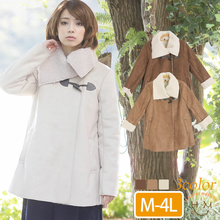 【全品10%オフクーポン5/6 9:59まで】 ssL〜 大きいサイズ レディース コート■ボンディング フェイク ムートン 内ボア アシメ 衿 長袖 コート トグルボタンでキュートな印象に■コート アウター L LL 3L 4L 11号 13号 15号 17号[[148537]]【O】 あったかアウター