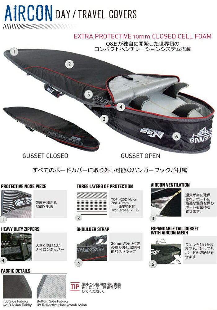 ・ノーズやテールの、より衝撃がかかるところに追加のプロテクション ・トップとボトムに衝撃吸収フォーム ・撥水処理された破れにくくタフな生地 ・取り外し可能で20mmパッドのショルダーストラップ ・フィンを付けたままでも外してもボードの収納ができます ・Fits:1 Board・WIDTH:575mm ブランド OCEAN&EARTH オーシャンアンドアース 材質 丈夫なポリエステル生地 送料 基本送料 無料 (別途追加 沖縄本島: +1,000円、離島: +2,000円) ※同梱・代引・配達日時指定不可 ※メーカー直送の為、代引き不可(決済方法はカード決済かお振込でお願いします) ※銀行振込、コンビニ前払い等、前払い決済の場合は入金確認後のメーカー取り寄せとなりますこと、予めご了承下さい。