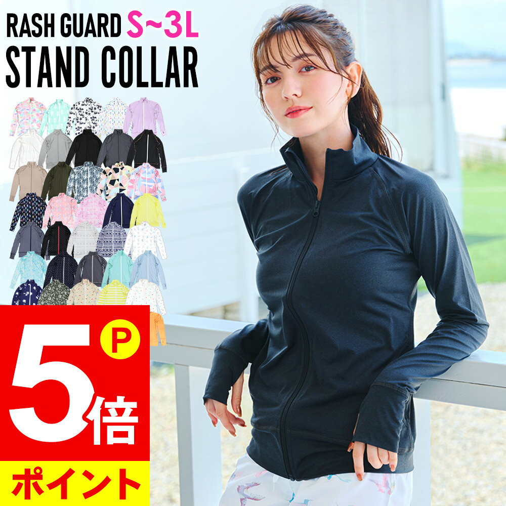 【ポイント5倍】接触冷感 ラッシュガード レディース ジップアップ スタンドカラー S〜3L ラッシュジップアップ スタンド衿 長袖 大きいサイズ UPF50+ UVカット FELLOW 指穴つき 紫外線対策 全32色